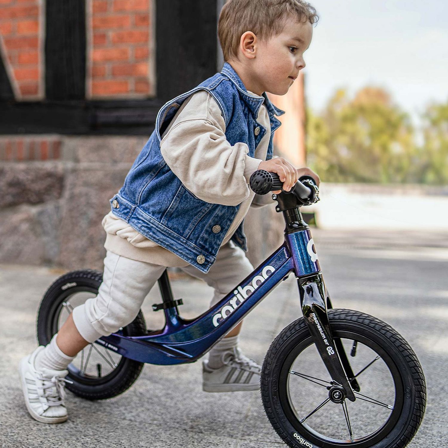 Cariboo Magnesium Air features solutions inspired by professional mountain bikes and cross bikes. This is one of very few balance bikes on the market featuring an integrated handlebar- which guarantees secure and comfortable steering. And all of that translates into safety (especially when making turns).