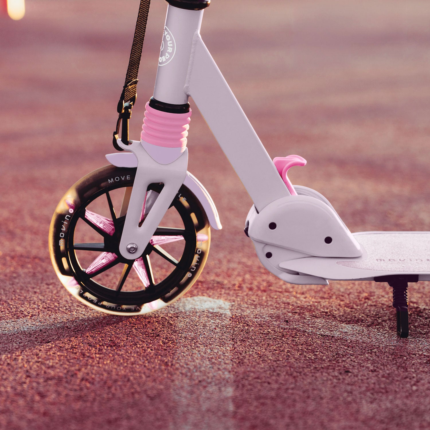 Movino City Light is a scooter that stands out with every move. LED wheels, a shock absorber, and a refined design guarantee a smooth, stylish ride – every day and without limits. The kickstand, cleverly hidden in the deck, allows you to park the scooter anywhere, while the adjustable handlebar... Show more