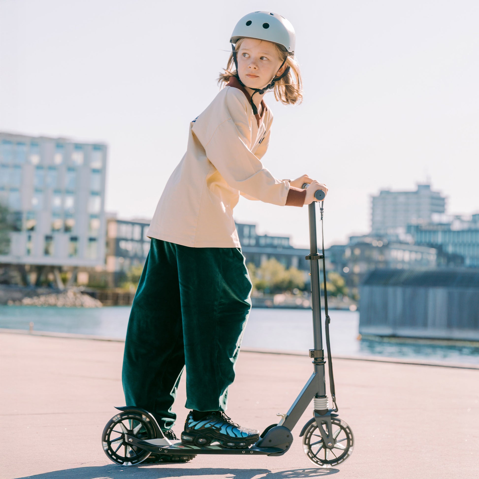 A handlebar that plays on your team. With the City Light, you adjust its height however you want – you grow, and the scooter keeps up with your growth. Always at your level, always ready to ride.
