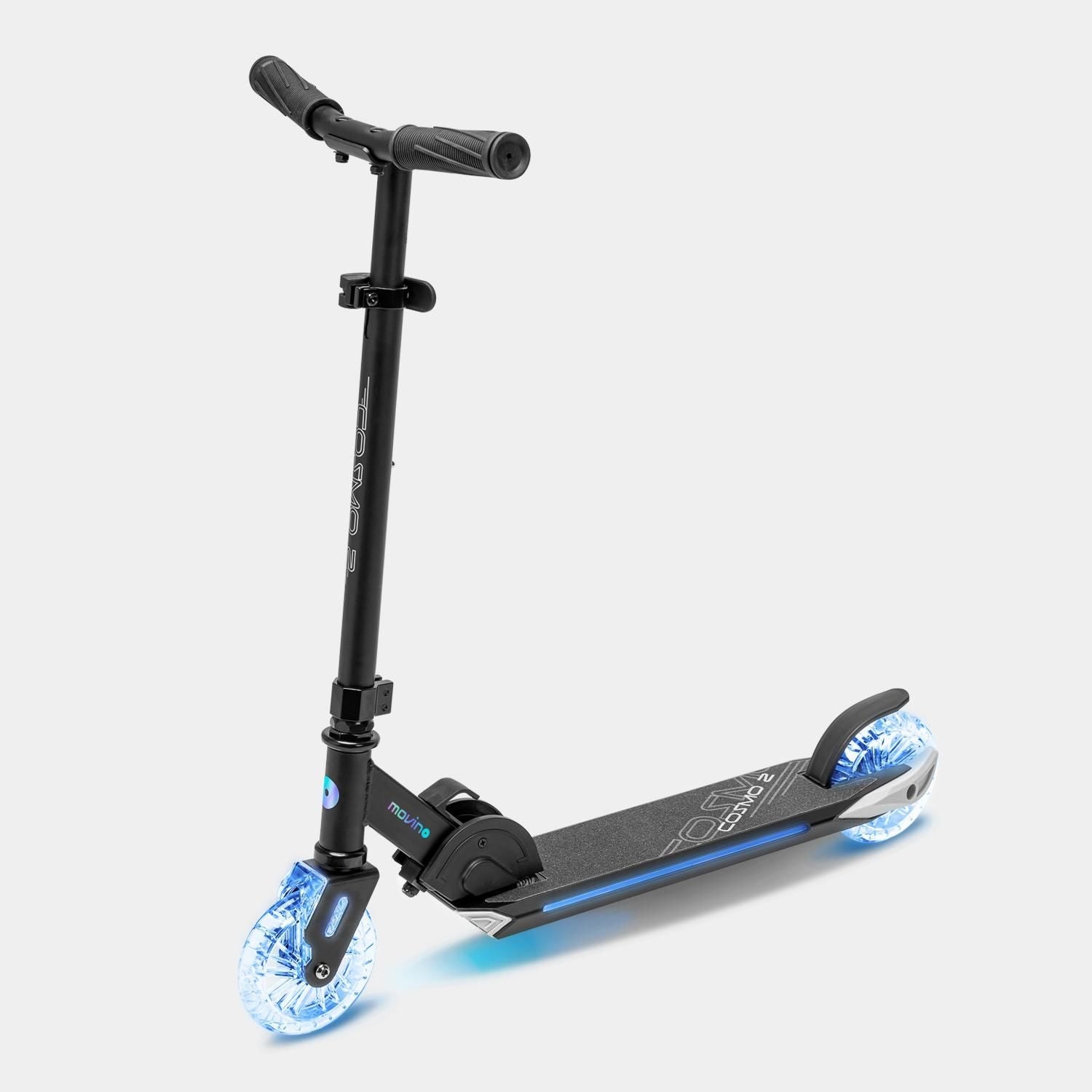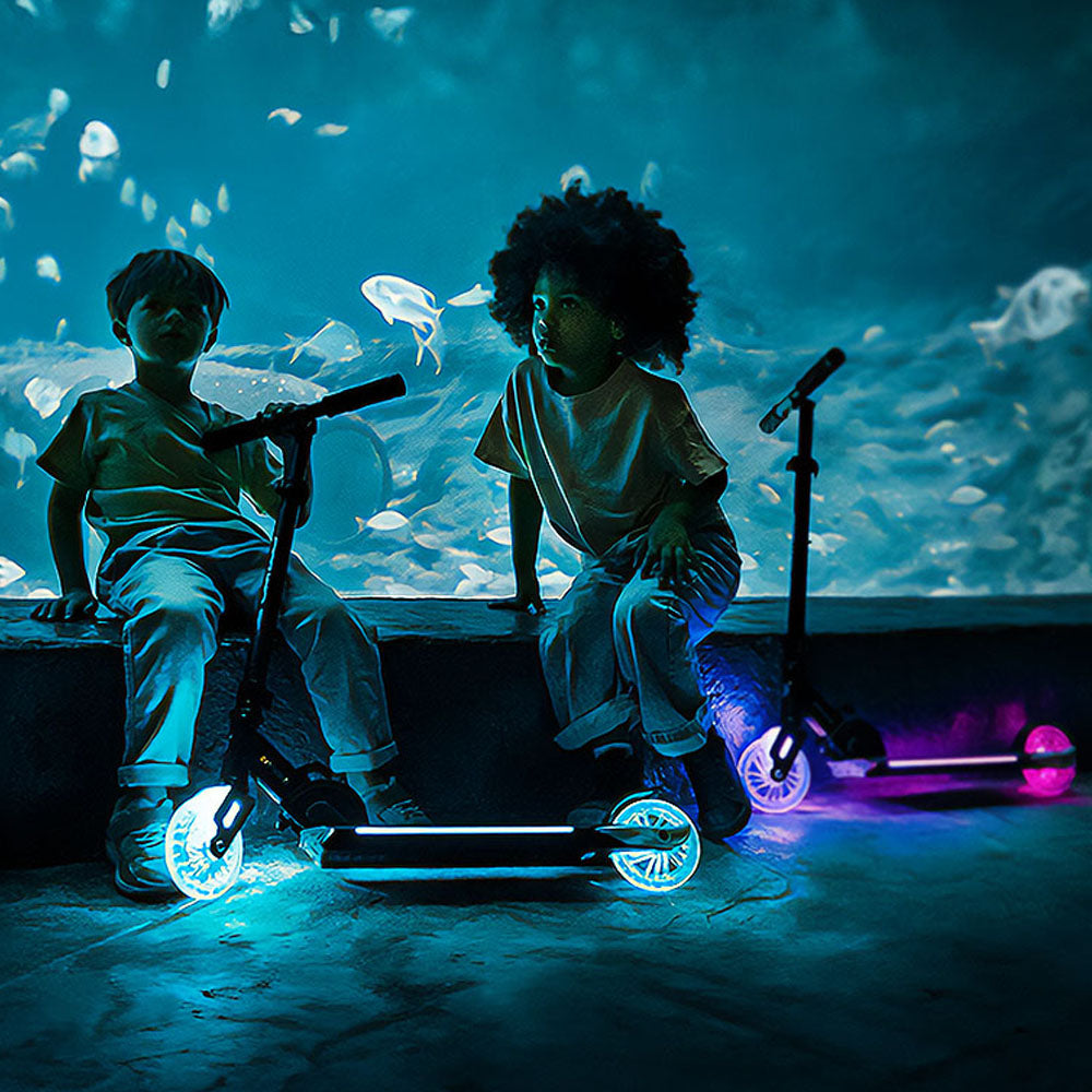 The lights on the Cosmo 2 scooter are visible even on the sunniest of days! Not every scooter can do that. Ordinary LED lights don’t provide such a spectacular effect and only work when the scooter is in motion. The Cosmo 2 lights up even when it’s not moving. Just press a button. The lights are powered by AA batteries.