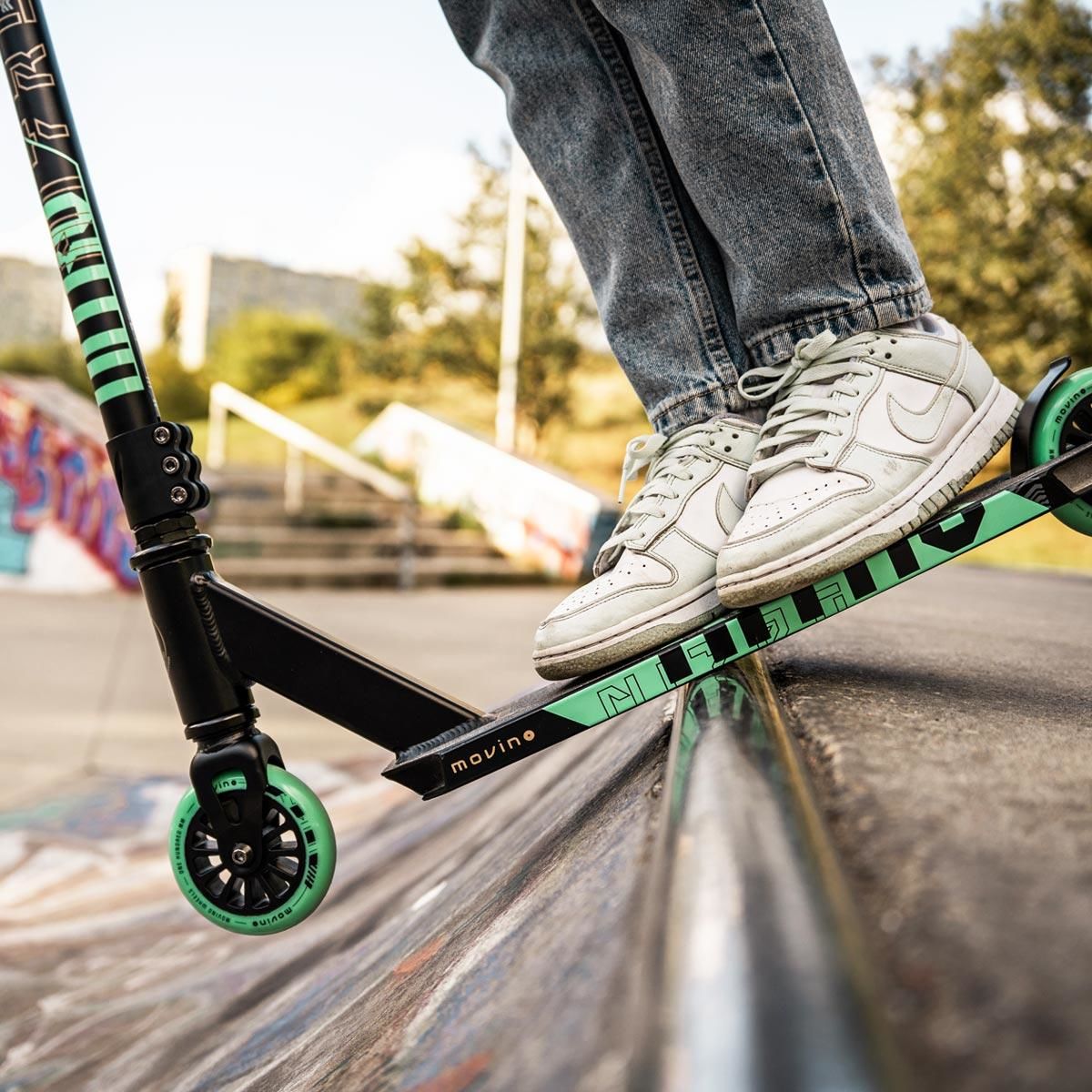 If you want to start your adventure at the skatepark, you need to choose the right stunt scooter. At Movino, we know what to focus on to create equipment for beginner riders. A lightweight and agile deck provides enough space for your feet, while 100 mm wheels with ABEC-9 bearings ensure precision and manoeuvrability.