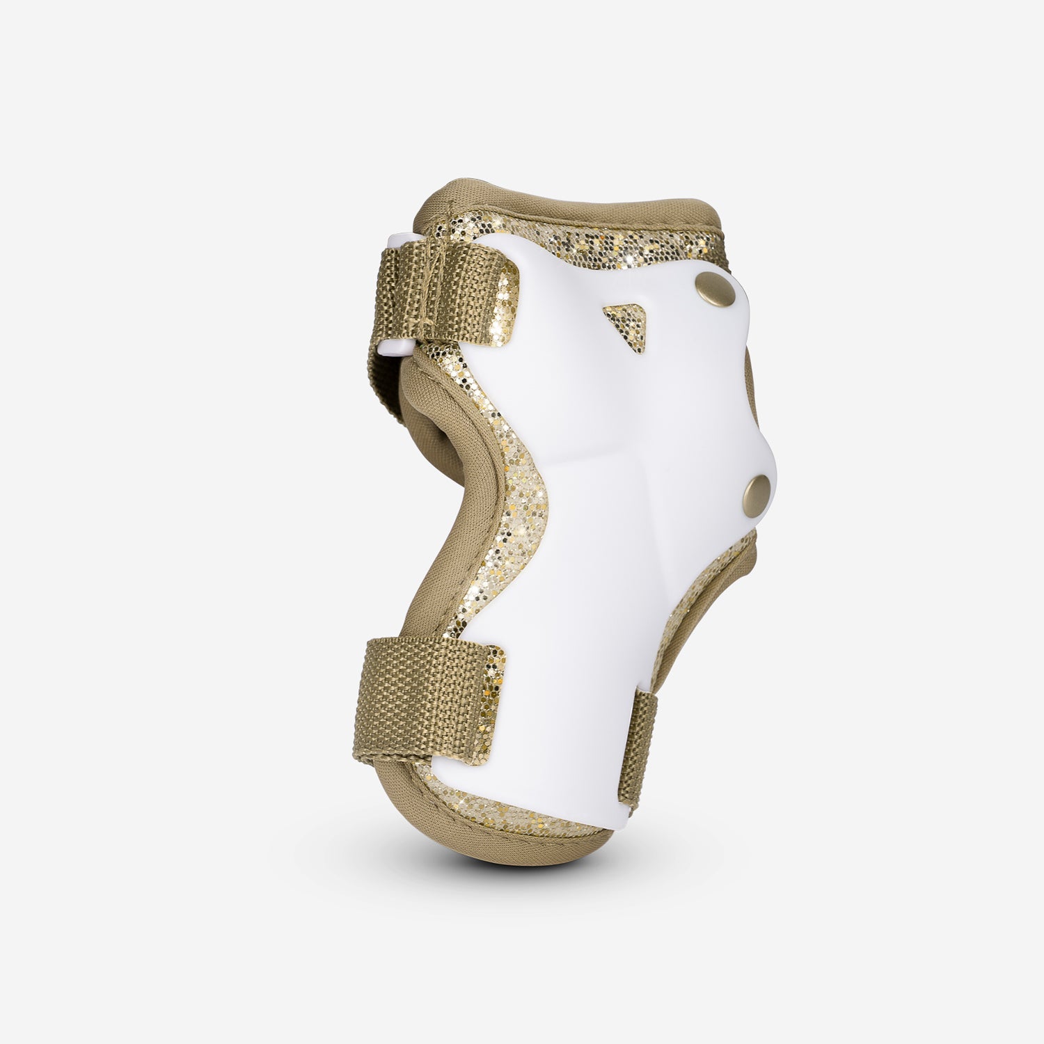 The shimmering finish of the protectors perfectly matches the Ballerina skates. Complete with a coordinating helmet, they create a set that will make every little skating enthusiast feel special and happily set off on new, sparkling adventures.