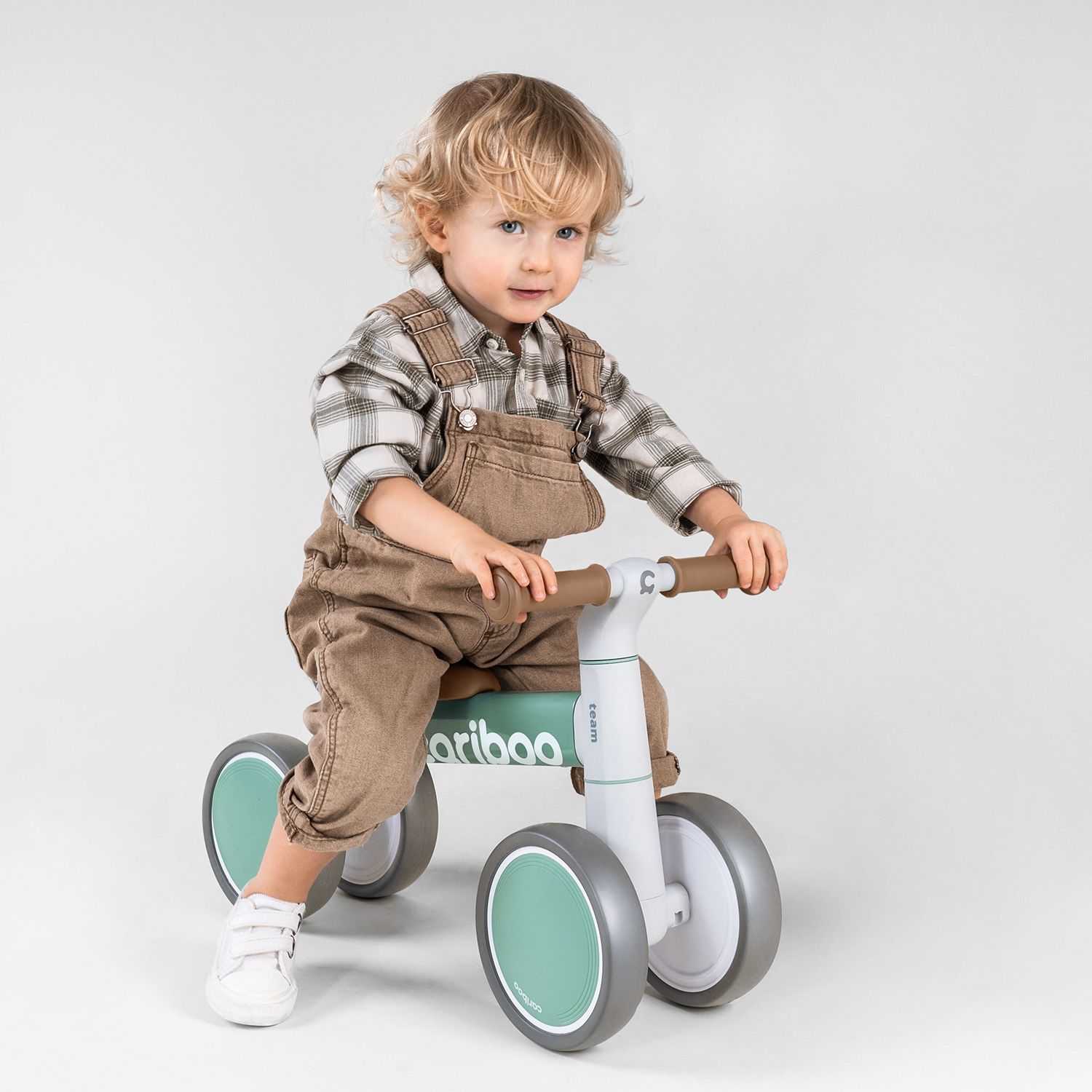 La bicicleta de cross-country Cariboo Team está equipada con cuatro ruedas (2 delanteras y 2 traseras) hechas de espuma EVA. La bicicleta es estable y segura, permitiendo aprender a equilibrar el cuerpo y practicar la coordinación motora.