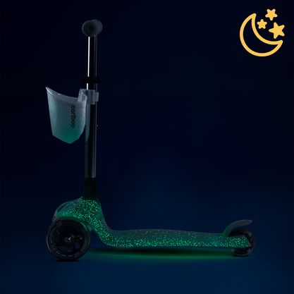 Looks like magic? The Ghost scooter’s glowing deck is the result of phosphorescence. During the day it absorbs light, and after dusk it releases it as a soft, greenish glow. For a child, it’s a charming effect; for a parent – a clever way to make the dark less scary and spark curiosity about the world. No batteries or cables needed – just light and a bit of patience. It’s a fun way to discover the mysteries of the night.