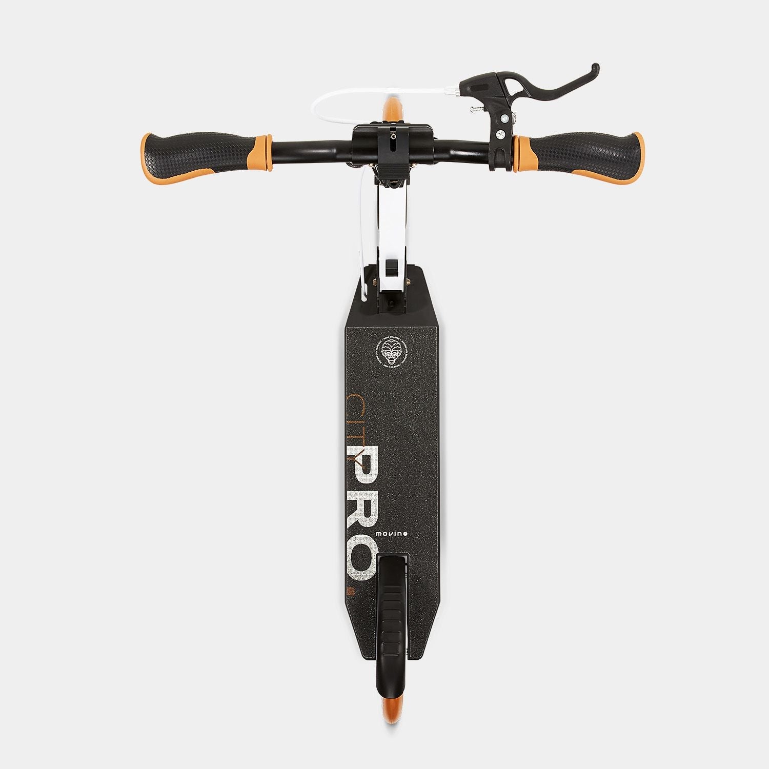 City Pro é uma trotinete urbana confortável, elegante e extremamente prática. Para garantir passeios agradáveis, ela possui uma plataforma longa e larga coberta com griptape antiderrapante, além de grandes rodas com rolamentos de classe ABEC-7. O guiador largo permite ajustar a altura em três níveis, e os punhos de borracha ergonómicos oferecem uma pega firme – suas mãos não se cansarão mesmo em viagens mais longas. O sistema de dobragem simples e intuitivo facilita o transporte e armazenamento da trotinete. Com travão duplo, amortecedor dianteiro e estabilizador de direção, a condução torna-se ainda mais confortável e segura.