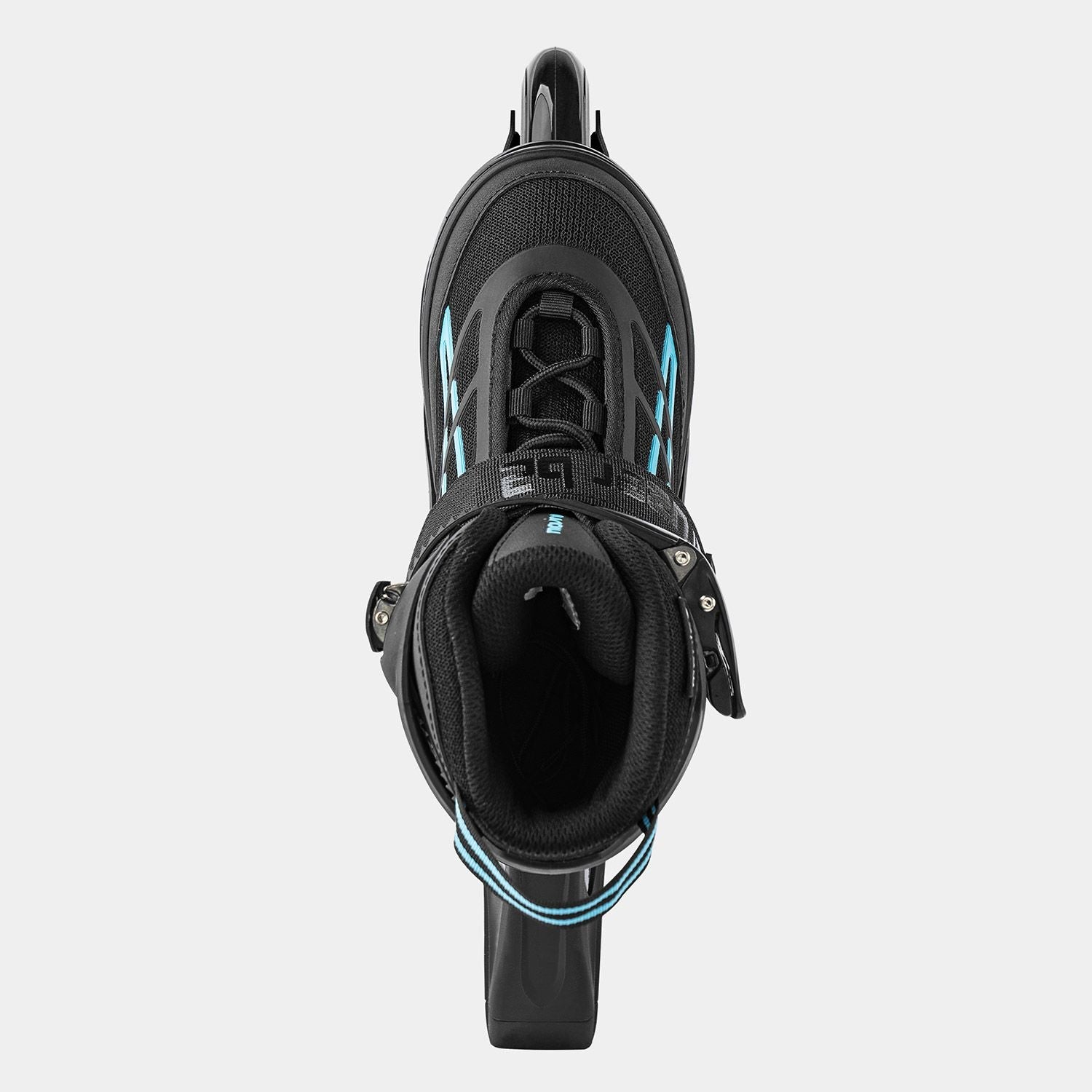 A base para uma patinagem confortável e segura é um pé estável em um calçado bem preso. Os patins Movino Cruzer B2 possuem um sistema de fecho triplo: fivela, atacadores e tira. A construção especial da fivela permite um fecho rápido e eficiente do calçado, impedindo que ele se solte ou desamarre durante a patinagem.