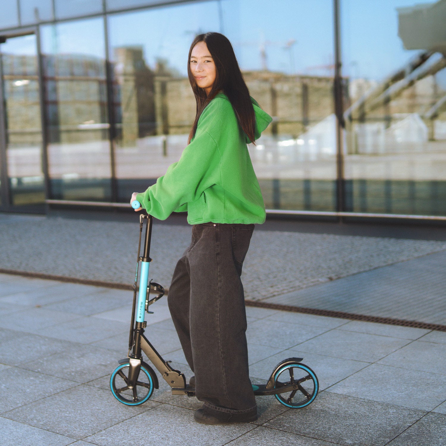 Ao se deslocar com a trotinete Infinity, terá a sua garrafa de bebida favorita sempre à mão. Um suporte inteligente para garrafas, localizado na coluna do guiador, oferece uma solução muito conveniente. E não é só isso! O Movino Infinity também possui uma alça prática para transporte. Nem sempre é possível chegar a todos os lugares de trotinete, e às vezes é necessário carregá-la. A trotinete Infinity pode ser pendurada no ombro como uma bolsa. Com um peso reduzido de apenas 3,50 kg e uma alça ajustável, essa tarefa fica ainda mais fácil!