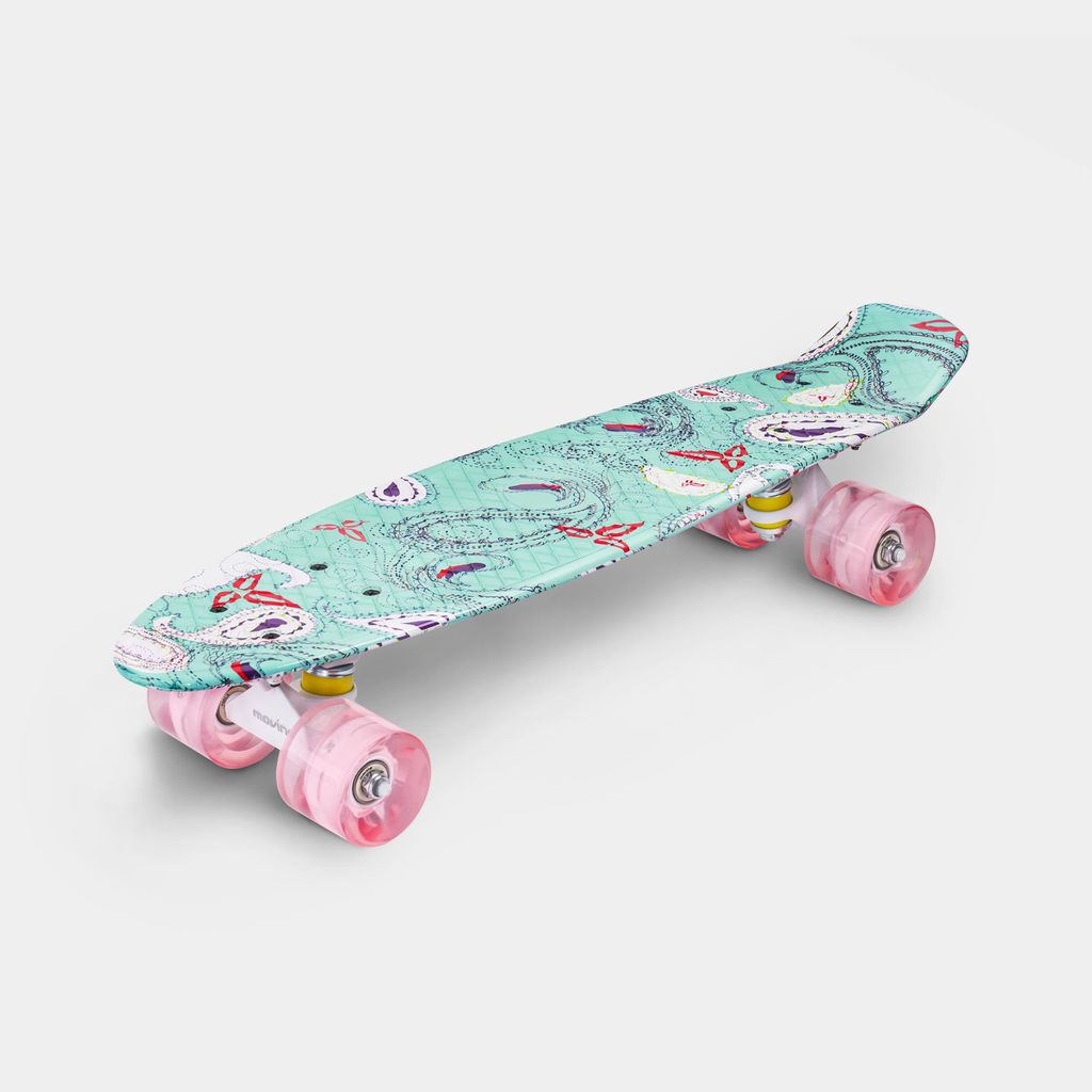 A penny board features large and soft wheels that are perfect for uneven surface. An additional advantage of the wheels used on Movino penny boards are LEDs - so popular among kids. Professional ABEC-9 bearings used on a penny board are the reason behind all those smooth rides. Enjoy a comfy and speedy ride!