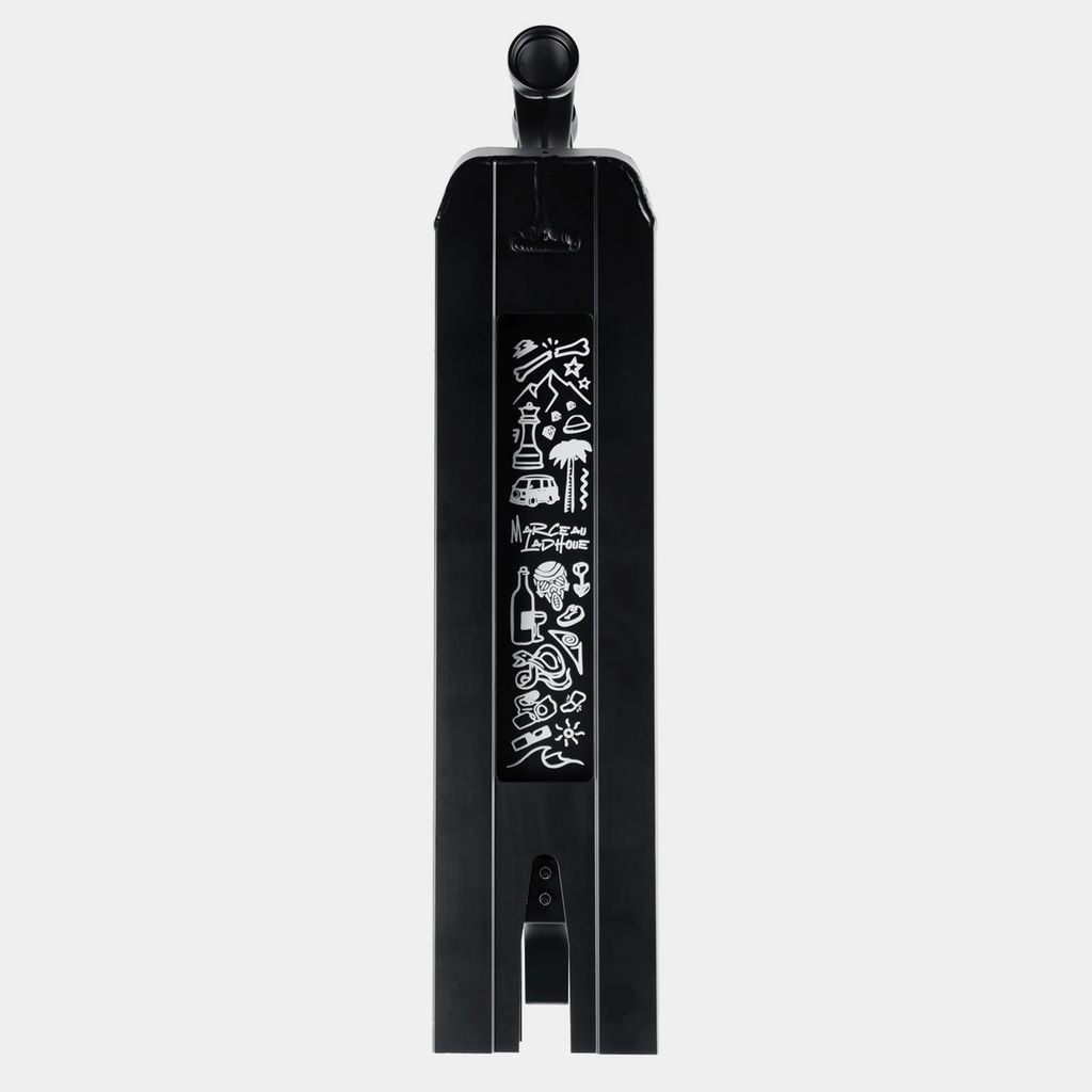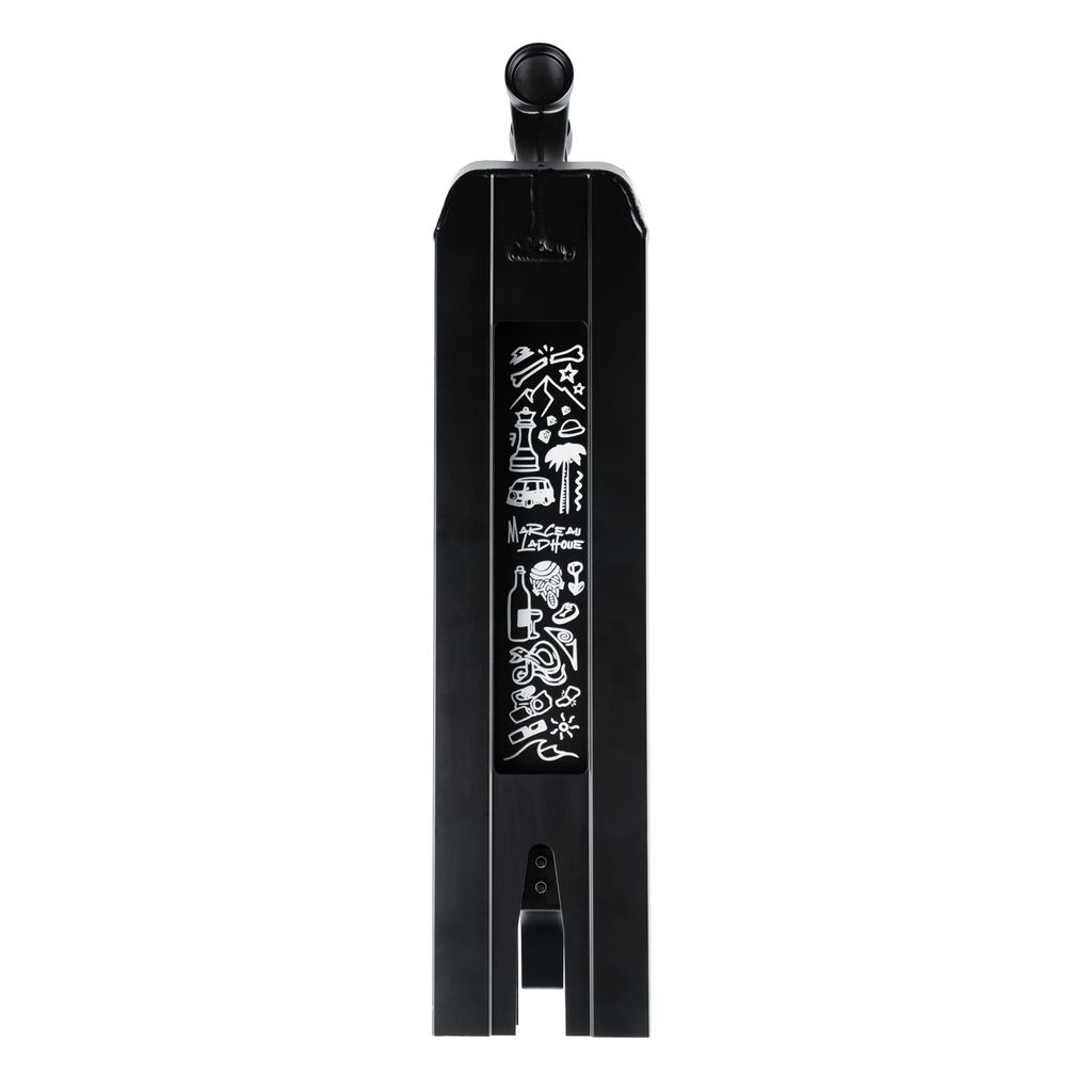Projetado para os melhores, este deck é fabricado com alumínio de altíssima qualidade. Compatível com o sistema de compressão integrado IHC, possui extremidades quadradas e um orifício na parte inferior que garante o equilíbrio perfeito da scooter, permitindo superar qualquer obstáculo e realizar truques complexos. O que realmente chama a atenção é a intrigante arte gráfica, inspirada nas viagens de Marceau.
